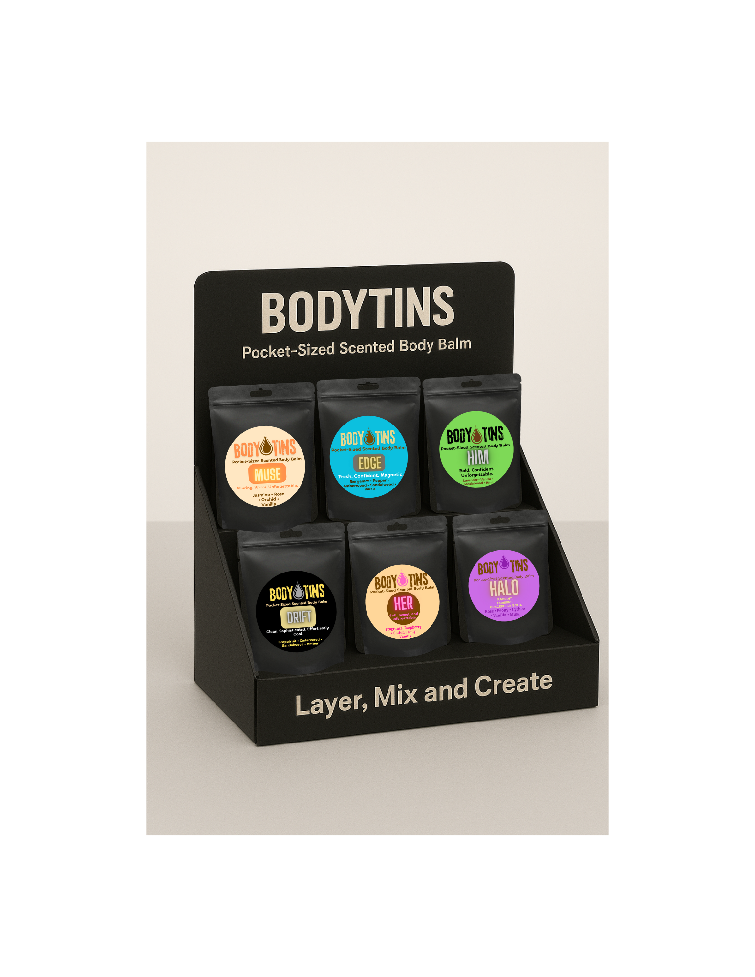 Meet BODY TINS โ pocket-sized, perfumed body balms crafted for skin and a scent that moves with you. Designed for effortless everyday wear, each tin blends nourishing ingredients like Coconut Oil, Beeswax, and Fragrance Oils with signature fine fragrance notes inspired by iconic scents.